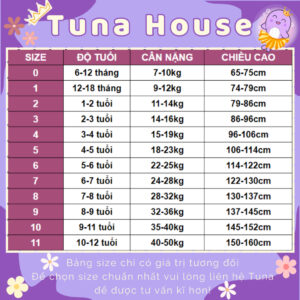 ❤️ Phom dáng chuẩn theo bảng size của Tuna. Nếu bé mũm mĩm/ béo bụng/ cao hơn thì mẹ chủ động tăng thêm 1 size cho con mẹ nha !